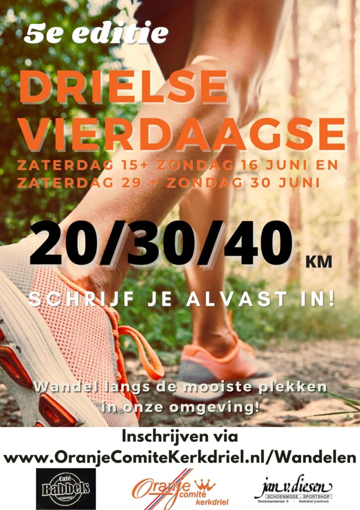In 2020 opgezet als eenmalig alternatief voor de Nijmeegse Vierdaagse, kwam er in 2021 toch een 2e editie! Inmiddels lijkt de 4 van Driel – Een vierdaagse wandeltocht van 20, 30 of 40km – door onze mooie omgeving een blijvertje.